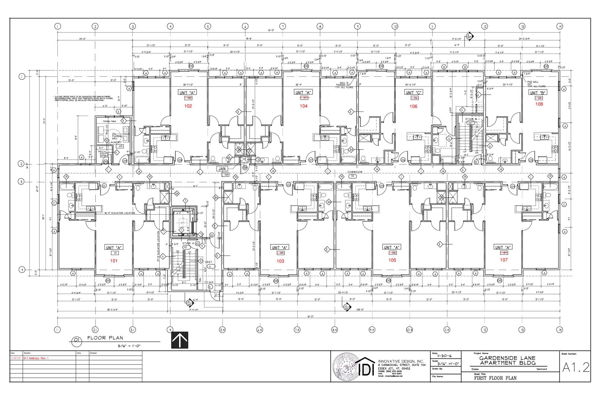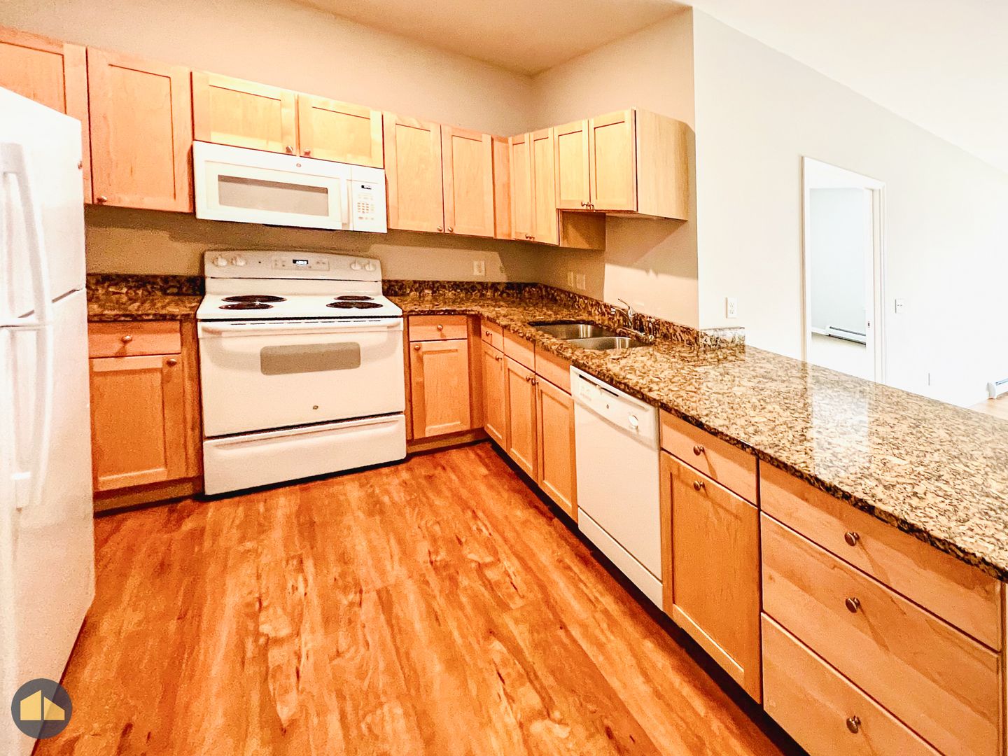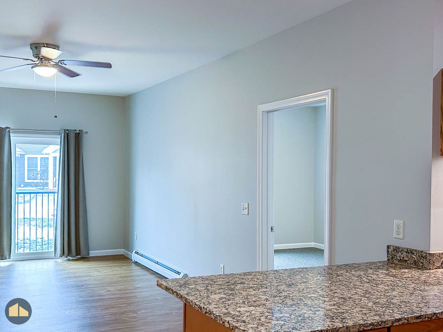This apartment resembles Layout A at 100 Griffin Lane. Even numbered apartments include black styled granite counters, and odd numbered apartments include bronze colored granite counters. Visit the Gardenside Commons Community page for more details (https://fullcirclevt.com/featured-communities/gardenside-commons/).