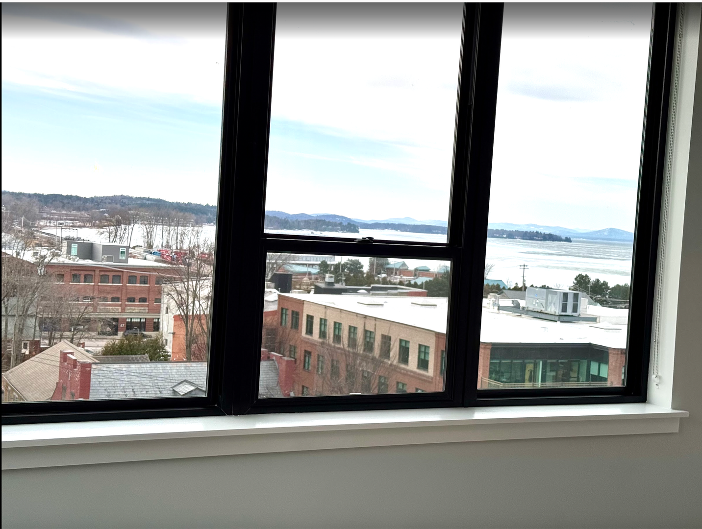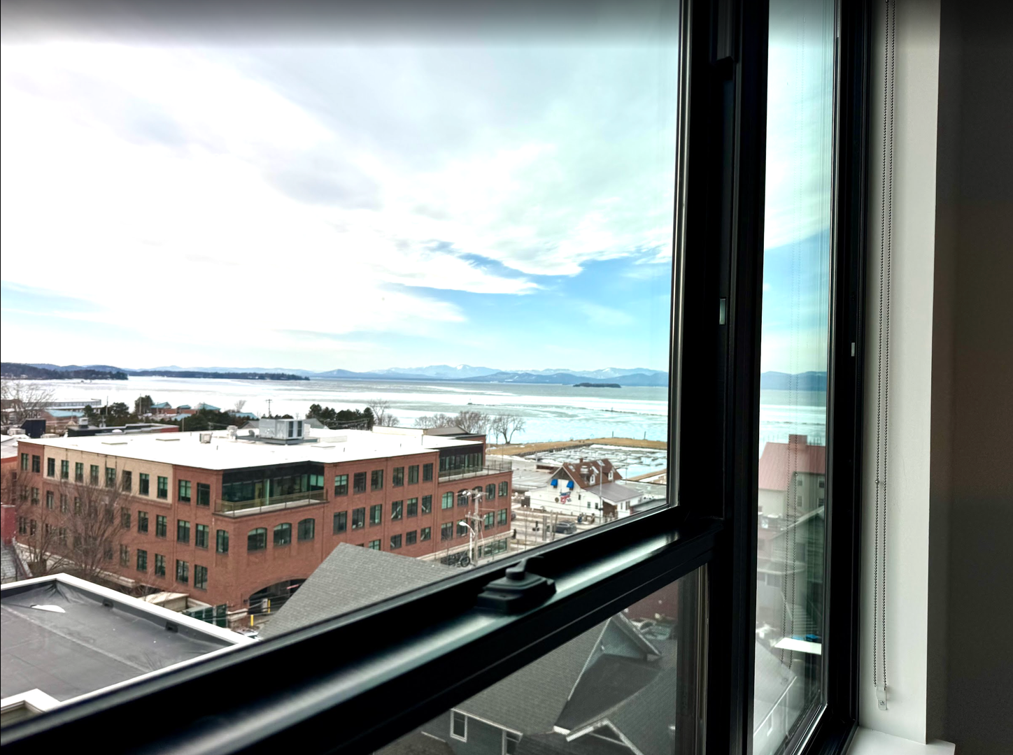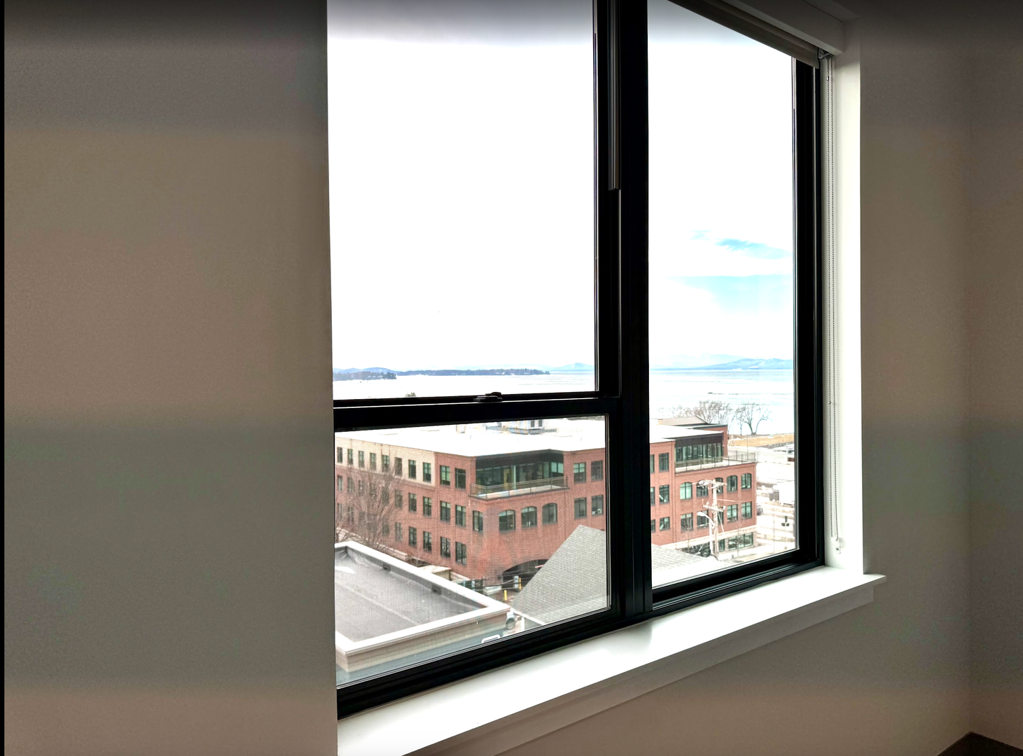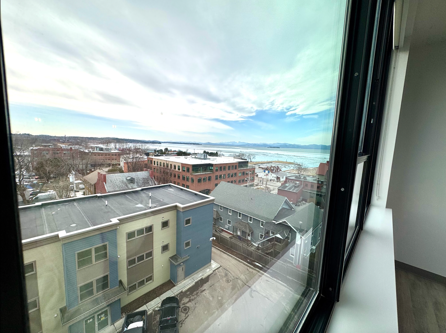 Upper-floor 1-bedroom at City West in Burlington, VT—Unit 508 offers panoramic lake, mountain and city views! Rent includes high-speed internet, in-unit laundry, and amenities that make daily life easy.