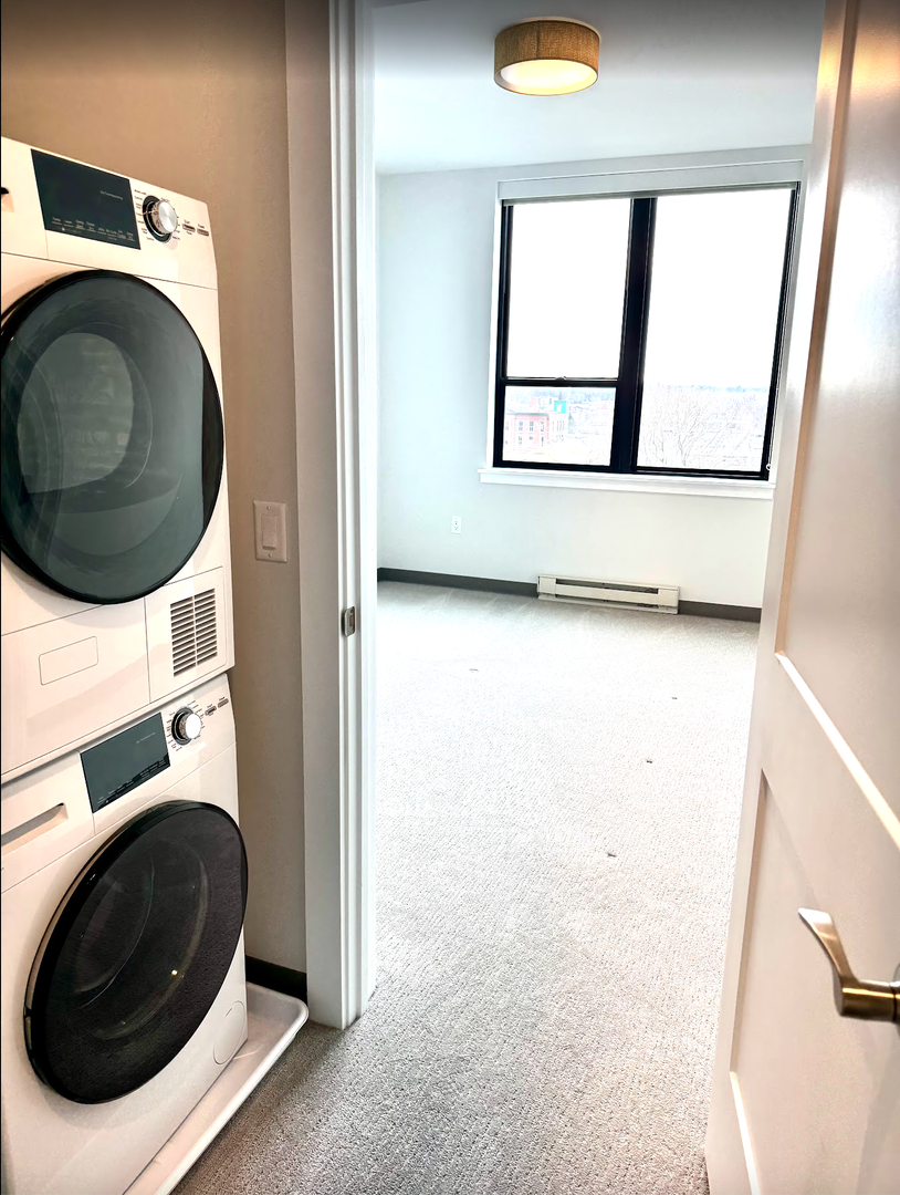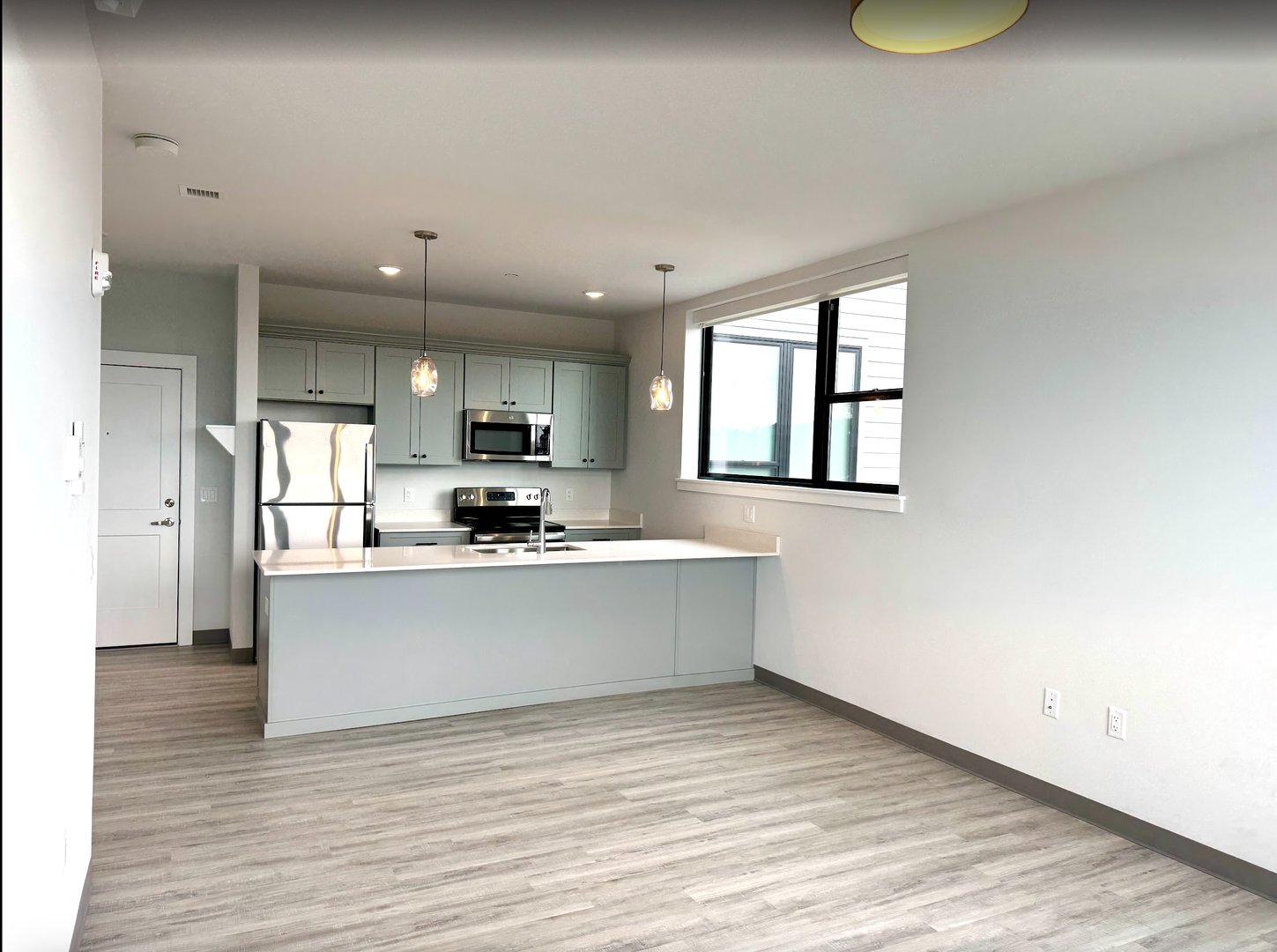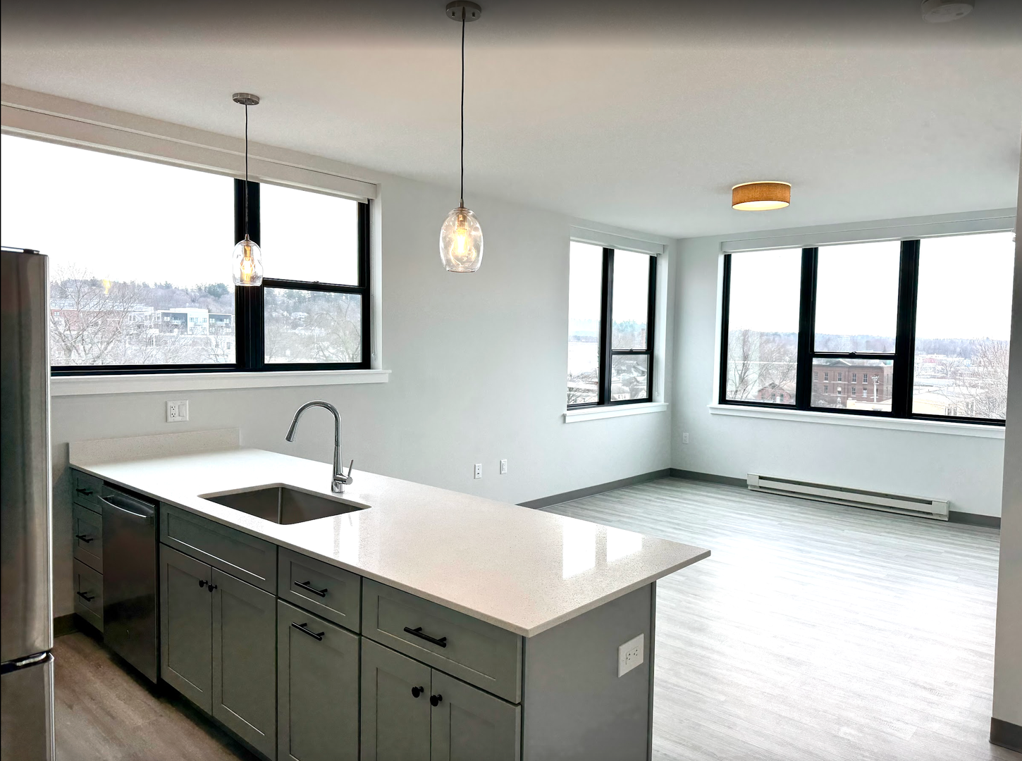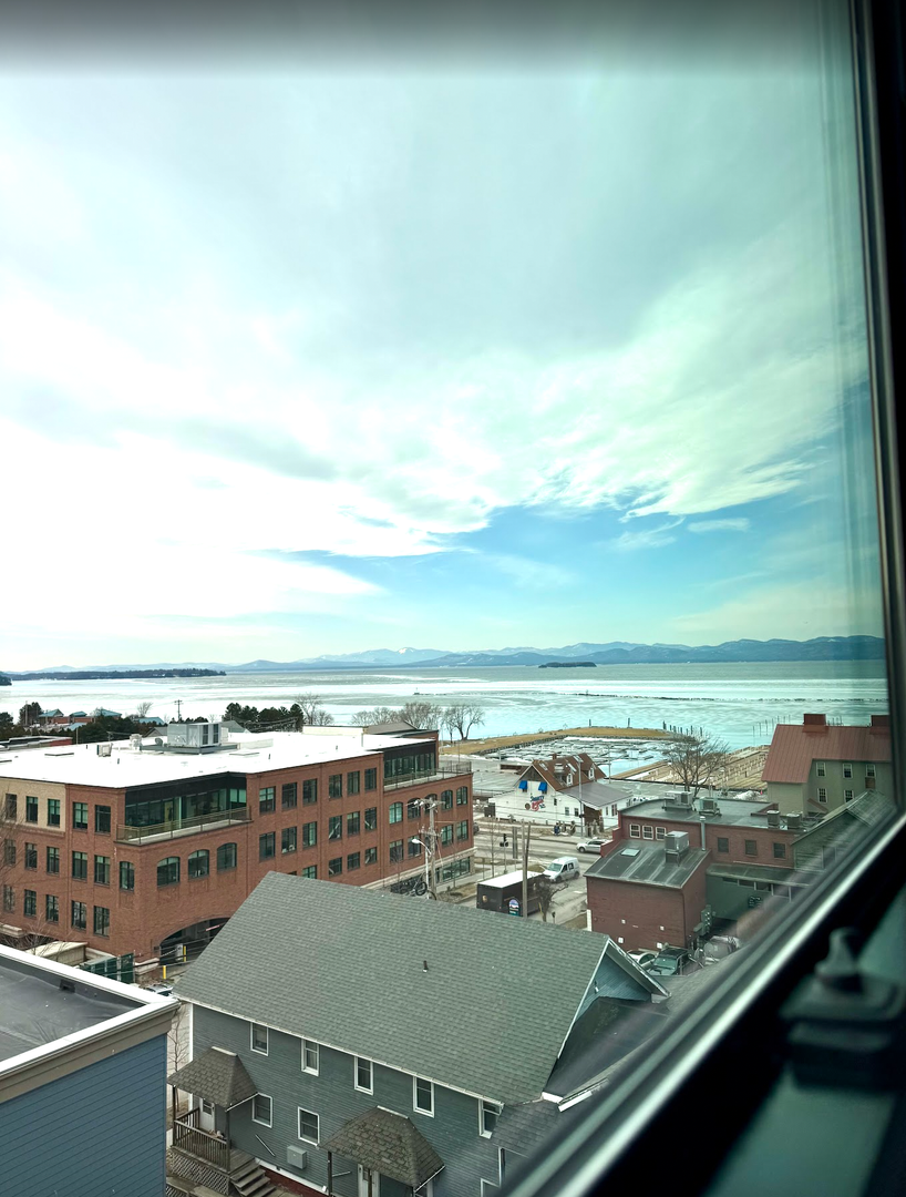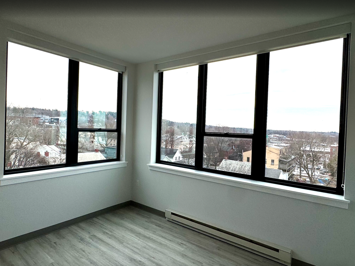 Upper-floor 1-bedroom at City West in Burlington, VT—Unit 508 offers panoramic lake, mountain and city views! Rent includes high-speed internet, in-unit laundry, and amenities that make daily life easy.