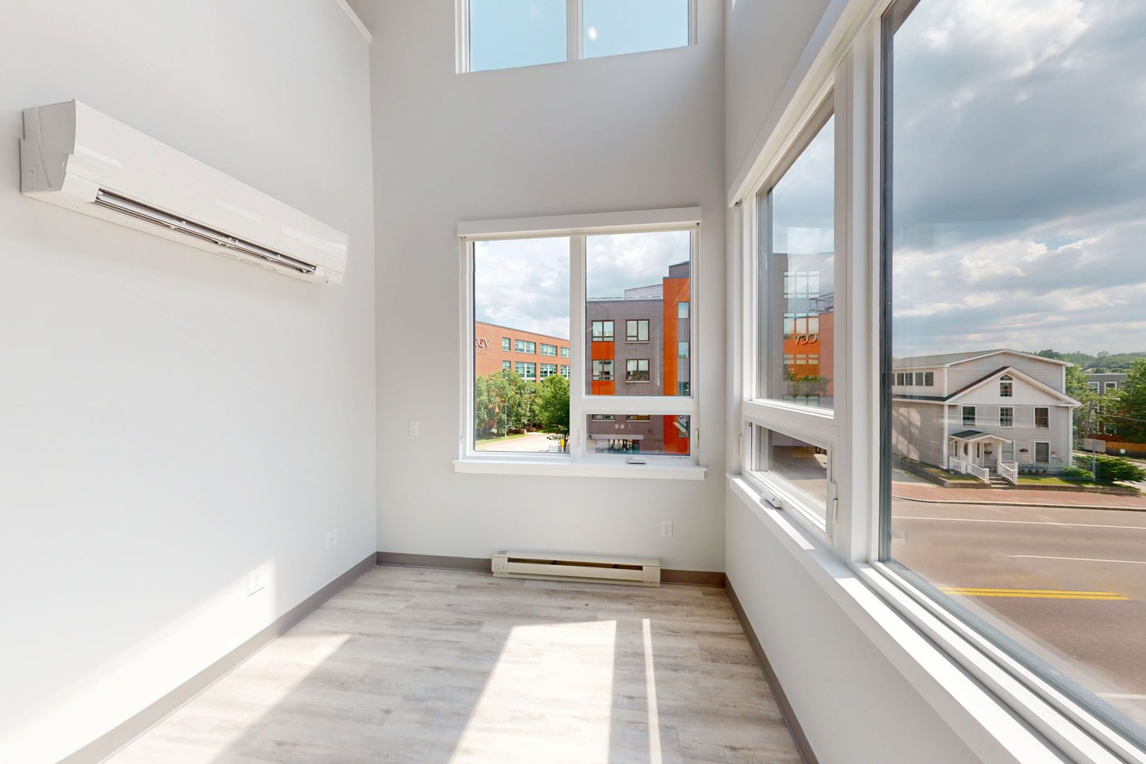 This one-of-a-kind two-bedroom apartment with a lofted den offers a dramatic, light-filled living experience unlike anything else in Winooski. A striking spiral staircase leads to the elevated second bedroom, creating a flexible space ideal for a second bedroom or home office, while adding architectural character and visual interest to the home.