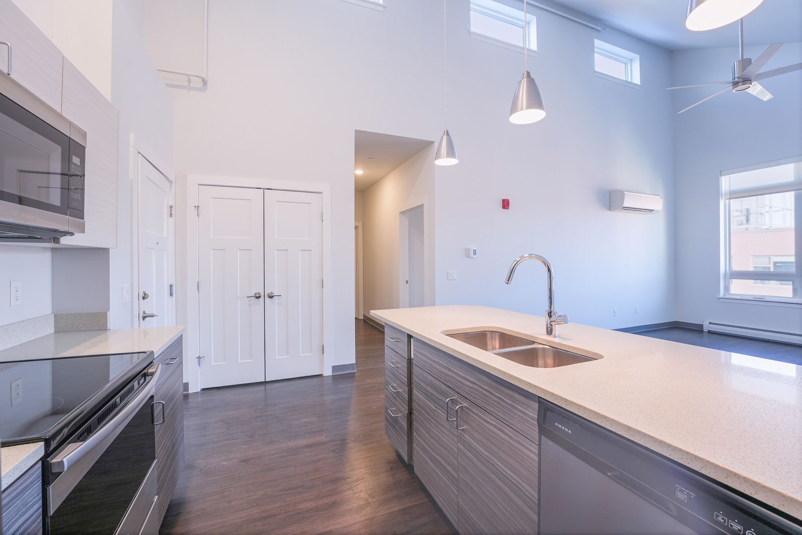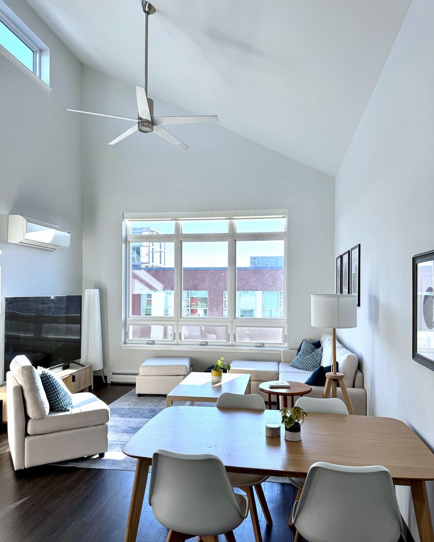 - Open floor plan with bright natural light and tall ceilings