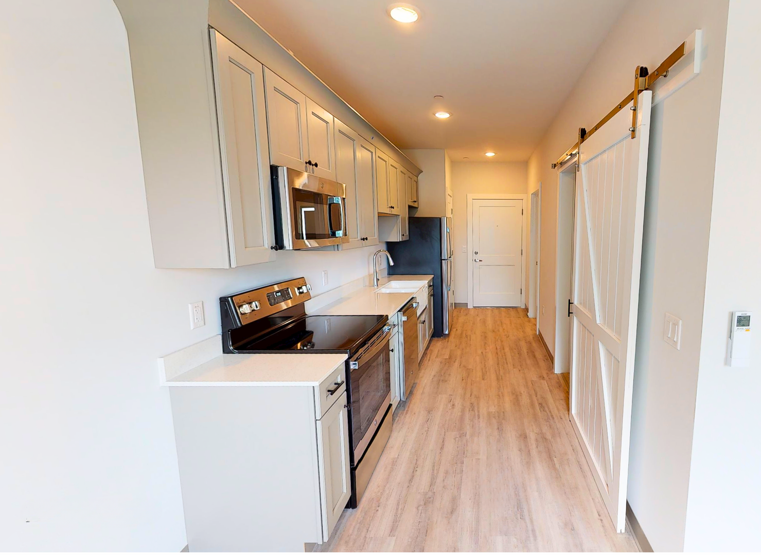 Discover the perfect blend of style, comfort, and convenience in this thoughtfully designed apartment with a private sleeping alcove featuring a charming sliding barn door for added privacy.