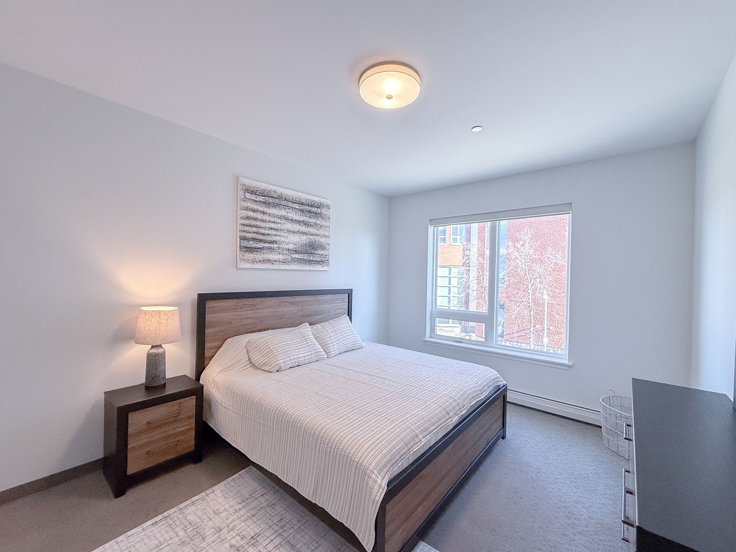 Light & Airy: Enjoy expansive windows that flood the space with natural light, complemented by high ceilings (9'4") and modern pendant lighting.